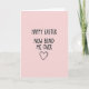 Este cartão apresenta um fundo rosa suave e monocromático que mantém o foco na escrita central. Perto do centro superior, o texto “HAPPY EASTER” aparece em letras grossas e carvão escuro com bordas ligeiramente irregulares, dando-lhe um visual casual e íntimo 🐰. Logo abaixo, a frase “NOW BEND ME OVER” é apresentada no mesmo tom e peso escuros, criando um contraste atrevido com o campo de cor suave. O espaçamento entre as duas linhas parece próximo e intencional, como uma nota particular compartilhada entre parceiros brincalhões ou amigos próximos que se trocam provocações. Centrado abaixo do texto, há um coração estilizado, delineado primeiro em uma tonalidade profunda que combina com a letra, e depois traçado novamente por dentro com uma linha rosa mais fina para um efeito em camadas 🌷. O contorno duplo do coração parece duas figuras se aproximando, sugerindo proximidade sem adicionar imagens extras. Tudo está organizado em uma simples pilha vertical sobre o fundo rosa, com o texto escuro e o coração em camadas destacando-se nitidamente contra o campo pálido. O coração está posicionado abaixo da linha inferior do texto, centrado, com o contorno rosa interno encaixado perfeitamente dentro da borda mais escura