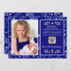 Feliz Passover. Padrão Festivo Azul Festivo Floral e Menorah com embelezamento de folha de ouro Cartão com fotos de Páscoa com foto e nomes personalizados. Cartões e presentes disponíveis na Categoria Feriados Judeus da nossa loja.
