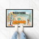 Feliz tapete de outono de Camper com lago, veados e árvores de mapa.