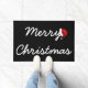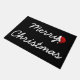 Matriz de porta mostrada em preto e branco com um chapéu de Papai Noel feriado. Mat maior mostrado aqui. Personalize este tapete ou comprar como está.