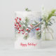 Feliz Cartão de Saudação Feriados com um galho com bagas vermelhas. Pode ser personalizado, adicione seu texto ou nome e data na parte traseira do cartão. O texto da frente também poderia ser alterado. Substitua Feliz Feriados por outra saudação.