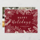 FELIZMENTE FÉRIAS: Quadro botânico brilhante e alegre com poinsettia, sagrada, bagas, e folhagem sobre fundo vermelho-queimado. Personalize esta elegante placa lisa de saudação de fotos de feriado com seu nome de família e adicione suas fotos favoritas da família. Personalize-o para alterar o layout da foto ou a cor do plano de fundo. Maneira contemporânea, clássica, moderna e na moda de enviar cartões de natal de inverno felizes para amigos e familiares.