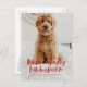 Envie desejos de feriado quentes e felpudos com este cartão postal vertical de uma foto com um quadro de neve espetado e a tipografia vermelha moderna. Perfeito para fotos de animais de estimação, mas também funciona bem para fotos de família. A parte traseira do cartão-postal contém outro ponto de foto e sala para uma mensagem personalizada.