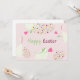 Uma ilustração festiva bonita com coelhos e flores de desenho animado, ovos de páscoa, cartazes de férias.
