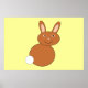Este poster apresenta uma imagem adorável de um coelho felz pascoa criado usando arte vetorial. O coelho é marrom com uma cauda branca. Tem um sorriso grande no rosto como um coelho da Páscoa deveria.