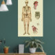 Visão superior do esqueleto feminino criada com ilustrações antigas. Inclui a seção transversal da cabeça e do pescoço, os músculos da mão.