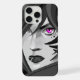 Portrait type manga d'une femme aux yeux de couleur fuchsia. Le regard d'une guerrière pour sublimer la coque de votre portable.