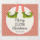 Pernas de elfo divertidas vestindo meias listradas de marfim e vermelho e botas verdes com sinos de jingle, e sua saudação de Natal de Natal em caracteres chicos, personalize essas etiquetas de garrafa de vinho espumante para servir na sua festa de Natal ou para dar como presentes ou favoritos para festas, presentes corporativos, presentes corporativos, MUDE A PALAVRA "Feliz Elfin Christmas" para qualquer coisa!