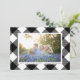 A xadrez de verificação de búfalos pretos é um clássico motivo de férias de inverno e recebe uma atualização moderna com uma cor de fundo profunda. Troque a foto horizontal para a sua, ajuste a borda do retângulo branco para o ajustado, personalize o texto, mude a cor de fundo do lacre para o que você quiser e até tente um filtro de fotos divertido para personalizar totalmente esta placa.