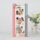 Listras verticais estreitas de vermelho, azul, verde e creme dão a esta três cartões de feriado uma vibração moderna e chic emparelhada com fontes clássicas elegantes em preto. O backer tem ampla margem para uma mensagem personalizada mais longa de alegria ou atualização familiar para envio a amigos e familiares próximos.