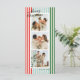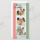 Listras verticais estreitas de vermelho, azul, verde e creme dão a esta três cartões de feriado uma vibração moderna e chic emparelhada com fontes clássicas elegantes em preto. O backer tem ampla margem para uma mensagem personalizada mais longa de alegria ou atualização familiar para envio a amigos e familiares próximos.
