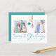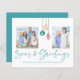 Ornamento de Seashell de Ornament de Seashell Foto de natal Cartões de Natal com azul de turquesa e anéis de concha arenosos pendurados na velejação de juta com tipografia elegante. Adicione duas das suas fotos e uma mensagem pessoal para um cartão náutico divertido. **O nosso documento sobre o ORÇAMENTO é menor, mais leve e mais delicado, mas ainda é bonito! Não se esqueça dos envelopes!** Se você precisar de ajuda ou itens correspondentes, entre em contato conosco em cedarandstring@gmail.com.