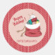 Vestidos de Natal vermelhos com borda vermelha e rosa. Personalize-os com seu Cartões de natal favorito e seu nome de família. © ArianeC Ilustrações — Todos os direitos reservados