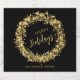Uma coroa dourada rodeia as palavras Felizes Feriados em letra chic num fundo preto nestas etiquetas de garrafas com a sua personalização no fundo. CORRESPONDENTE a itens na nossa coleção.