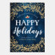 Envie um torcida de férias aos seus clientes, obrigado-os por um excelente ano com este cartão de tipografia festivo e moderno estilo de assinatura, com a mensagem "Desejar-vos e à vossa família Felizes Feriados." Espaço reservado abaixo para seu nome de empresa/empresa. Design aparece com louros de ouro digitalmente renderizados e confete em cima e em baixo sobre o fundo azul escuro texturizado. Dentro tem esta mensagem (Mas todo o texto é editável nesta modelo); Desejando a você e às suas famílias os maiores votos para uma maravilhosa temporada de férias e um sucesso e feliz ano novo.