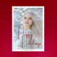 Este cartão de Natal magnético glamouroso de Hollywood é perfeito para um modelo ou atriz que é a estrela do show. Feliz feriado escrito em um autógrafo de celebridades, rastreado manuscrito para um famoso visual fotográfico. Roteiro vermelho elegante sobre sua fotografia vertical favorita.