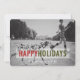 "Felizes feriados" cartão com fotos moderno de feriado com cobertura de texto vermelho e verde em negrito. ELKE CLARKE © Versatile design para adicionar sua foto, seu nome e ano, em uma fonte de texto retrô, e enviar para a família e amigos para os feriados. Padrão de listras verdes e brancas atrás. Outras cores disponíveis.