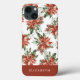 Esta elegante capa de telefone de Natal apresenta um belo padrão de folhagens pintadas à mão em aquarela, flores de poinsettia e pinhas. Encontre itens correspondentes na Coleção de Poinsettia de Natal.