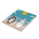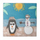 Um boneco de neve e um pinguim tiram férias para a praia.
