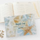 Starfish Aluguel De Férias De Praia Era Um Livro De Convidados. Personalize esta Casa de Praia, Bed & Breakfast ou o Catálogo de Convidados de Propriedade de Aluguel de Férias e torne-o exclusivamente seu. Trabalho de arte é um belo impressão de estrelas-da-índia costeira com um grande peixe-estrela realista e vários outros impressos em branco sobre fundo azul-claro. Fácil de personalizar. Design pelo Emporium de Jenn.