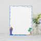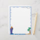 Esta cartola de férias apresenta uma fronteira azul-clara, uma ilha com palmeiras no canto inferior direito e um grande cruzeiro azul no canto inferior esquerdo.