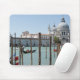 Mousepad com gôndola e os gondoliers na água do canal grandioso com o della de Santa Maria saudam a igreja no fundo que criam uma paisagem romântica da cidade durante as férias de verão em Veneza, Italia.