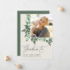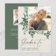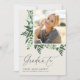 O anúncio da graduação de fotos elegante apresenta uma foto quadrada embelezada com folhagem verde de samambaia e flores brancas. "Formando" aparece abaixo, junto com o seu formando e escola ou faculdade. Adicione uma mensagem pessoal ao verso, juntamente com uma foto adicional.