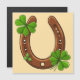 Uma ferradura marrom adornada com trevos verdes vibrantes, simbolizando sorte, proteção e charme irlandês. Ideal para o Dia de São Patrício, temas de sorte e folhagens festivas em designs decorativos ou promocionais.