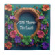 Flores vibrantes e folhas verdes, colocadas sobre fundo lacrimogêneo. O quadro apresenta uma textura de madeira, enquanto o arranjo floral inclui uma variedade de cores, como laranja, rosa, roxo e verde, criando uma composição animada e artística.