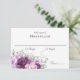 Sombras de bouquet de rosa d'água púrpura e ferraduras rústicas, cartão de resposta de casamento rústico de cor d'água para elogiar o convite de casamento.