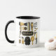 Procurando um presente perfeito e atencioso para o seu barbeiro ou cabeleireiro favorito? Esta caneca de café personalizável apresenta uma ilustração estilosa e inspirada no vintage de ferramentas clássicas de barbear e salão, incluindo cortadores de cabelo, tesouras, uma navalha, um pincel de barbear e uma capa tradicional de barbeiro.