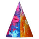 Chapéus de festas de papel totalmente personalizáveis. O fundo é um fundo pintado e é perfeito para uma festa de pintura, artista, amante de arte, ou qualquer pessoa que ame cores brilhantes.
