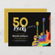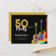 Convites de festa de 50º aniversário 50 Rocks com três desenhos de guitarra em aquarela. Uma guitarra elétrica com padrão de chama de fogo e guarda-pick vermelho, uma guitarra semi-acústica multicolorida e uma ilustração de arte de guitarra acústica clássica psicodélica com tipografia moderna preta e dourada personalizada. Este modelo fácil de usar cria o convite perfeito para celebrar cinquenta anos ao estilo do rock n roll e é ideal para um guitarrista, músico e amantes da música. Qualquer guitarrista dirá que você nunca pode ter guitarras demais. Este design de instrumento musical moderno e legal celebra a energia musical deste instrumento musical maravilhoso e é a maneira perfeita de agitar uma celebração de aniversário de cinquenta anos. Arte original da artista Catherine Sweetman