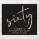 Etiquetas de vinho espumante preto elegantes para a sua 60ª festa de aniversário, com "sessenta" gravadas num guião de ouro cômico e o seu nome e a data em simples letras douradas.