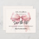 Um moderno e elegante Salve a Data para uma festa de aniversário (qualquer idade). Um fundo macio, colorido bege, decorado com um grande arco rosa. Personalizar e adicionar data, local, nome e idade. 1 folha = 1 convite impresso de borda a borda.