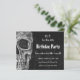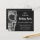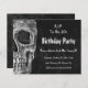 Cartão de convite de festa de aniversário de Halloween preto e branco vintage com caveira gótica RIP ao seu orçamento dos 20 anos. Divertido, assustador 30º aniversário. Direitos autorais da imagem Marg Seregelyi Photography.