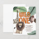 Uma alternativa menor de 4,5 x 5,6” de preço acessível, em semi brilho 110gsm que é semelhante em espessura a um cartão postal. Há UM por folha. Convite de Aniversário de 1 Ano de Animais de Safari Fofos do Selvagem Orçamento. Animais de safari doces e folhagens da floresta para a celebração do primeiro aniversário do seu pequeno! Selvagem está em um script estiloso fixo e o resto do texto pode ser facilmente personalizado para seus próprios detalhes.