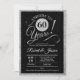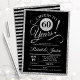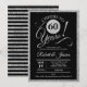 Convite de festa de aniversário de 60 anos de casamento em prata brilhante falso e preto. Cartão de convite impresso com elegante fonte de caligrafia tipográfica e listras no verso. Saúde por 60 anos! Pode ser personalizado para qualquer ano de aniversário. Perfeito para uma elegante celebração de aniversário de diamante de sessenta anos.