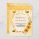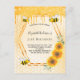 Elegante, divertido, verão rústico e outono 21 ruas (ou qualquer idade) convite de aniversário. Um fundo amarelo com um padrão alveolado. Com uma falso estrutura geométrica dourada e falsa gotejadela dourada. Decorado com girassóis amarelos e laranja e abelhas-desabrochadas felizes. Personalize e adicione seu nome e detalhes da festa. O nome é escrito com um moderno estilo escrito à mão. Letras negras. Traseira: padrão amarelo de mel, pingos de relva e abelha. Dica: Se você não quiser que pareça um cartão postal, clique em personalizar, vá para o verso e remova o divisor e o carimbo de posto.
