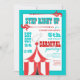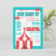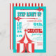 Um design divertido dá as boas-vindas aos convidados para se aproximarem do evento principal! Apresentando uma tenda de circo listrada vermelha e branca brilhante, tocada com um elefante balanceador. Este convite contém todas as informações do evento em um formato fácil de personalizar. Uma forma excelente de construir o entusiasmo de seus convidados enquanto eles antecipam a celebração de aniversário do carnaval ou do circo que está planejada para seu filho ou filha!