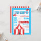 Um design divertido dá as boas-vindas aos convidados para o evento principal! Apresentando uma tenda de circo listrada vermelha e branca brilhante equipada com um elefante balanceador, este convite contém todas as informações de evento em um formato fácil de personalizar. Uma forma excelente de construir o entusiasmo de seus convidados enquanto eles antecipam o carnaval ou a celebração de aniversário do circo planejada para seu filho ou filha!