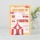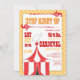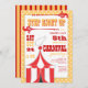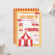Um design divertido dá as boas-vindas aos convidados para o evento principal! Apresentando uma tenda de circo listrada vermelha e branca brilhante equipada com um elefante balanceador, este convite contém todas as informações de evento em um formato fácil de personalizar. Um excelente de construir o entusiasmo de seus convidados enquanto eles antecipam o carnaval ou a celebração de aniversário do circo planejada para sua filha!