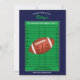 Personalize estes convites de aniversário de futebol com a foto favorita do seu jogador. O design do cartão de futebol tem um fundo azul escuro e apresenta um gráfico de capacete para a idade dos honrados de aniversário. Todo o texto pode ser alterado para atender às suas necessidades.