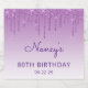 Estas etiquetas de frasco de vinho espumante de 80 chic apresentam uma borda de luz cintilante e roxa e fundo ombre roxo. Personalize-os com o seu nome num guião roxo de escrita manual, com o seu aniversário e a sua data em sans serif.