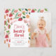 Berry, convites de primeiro aniversário para o seu grande dia! Este design apresenta um padrão de entalhe de morangos e flores contra um fundo rosado, com uma cobertura de arca de boho para o texto. O nome da aniversariante é escrito em letras divertidas com o termo "berry first" na tipografia retrógrada e sua foto personalizada está à direita. Este design pode ser usado para festas de jardim, festas de chá, festas de fazenda ou festas de mercado de fazendeiros, piqueniques ou qualquer outra celebração de verão! Como parte da seleção do orçamento do Zazzle, esta folha não vem em tamanhos padrão de cartão. Para colocar este design em uma placa padrão, você pode encontrá-lo na coleção ou usar o Zazzle Make Machine para transferi-lo para o seu produto preferido. Exibir a coleção vinculada nesta página para itens correspondentes ou visitar nossa loja para obter mais convites de festas de aniversários.