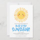 Convite de aniversário engraçado de ilustração do sol amarelo bonito. Design de ilustração do arco-íris amarelo. Parte de uma coleção.