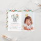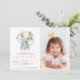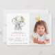 Convite de aniversário de menina elefante de aquarela. Com detalhes delicados de bolinhas azul e branca. Parte de uma coleção.