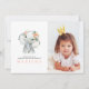 Convite de aniversário de fotografia de uma menina elefante de aquarela. Com delicado fundo floral e ilustrações impressionantes de elefantes. Parte de uma coleção.