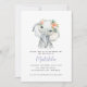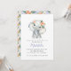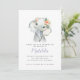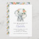 Convite de aniversário de menina elefante de aquarela. Com delicados detalhes florais de aquarela. Parte de uma coleção.