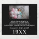 Fundo preto, texto branco. O texto: O nome é escrito em ouro rosa escuro com um grande estilo escrito à mão moderno. Personalize e adicione uma foto, data, nome e ano de nascimento, fatos divertidos ou uma biografia. Você pode alterar a cor do texto para corresponder ao seu tema de festa.